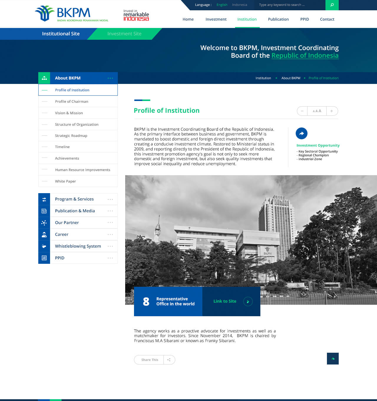 BKPM is the Investment Coordinating Board of the Republic of Indonesia. They are the primary interface and bridge between business, investor, and the government. They set a goal to boost domestic and foreign investment by establishing a conducive investment climate and sustainable development investments.