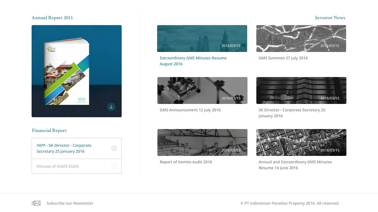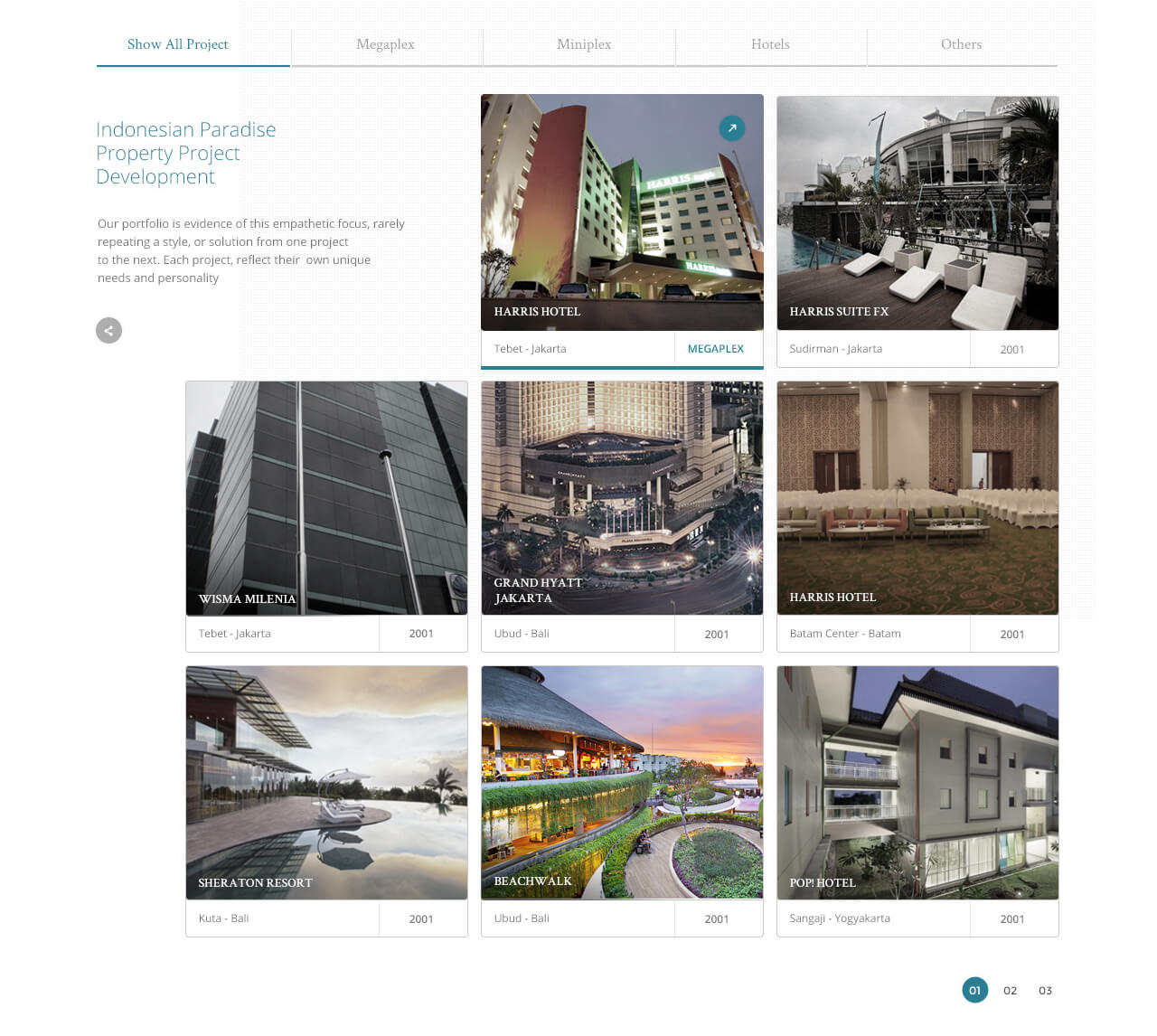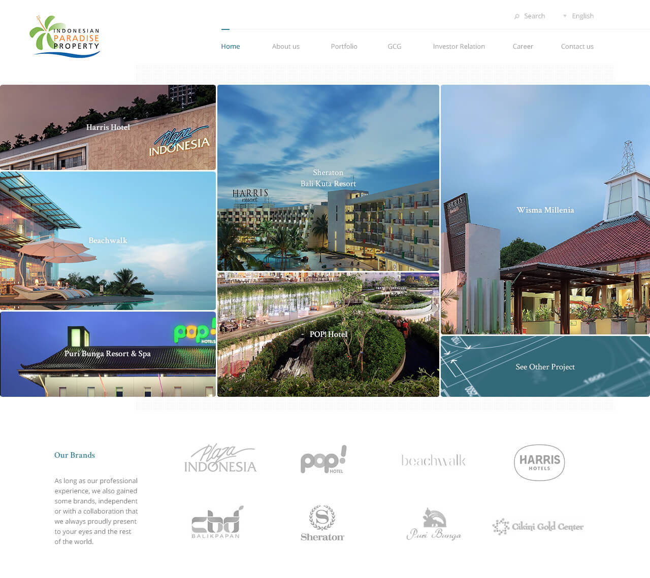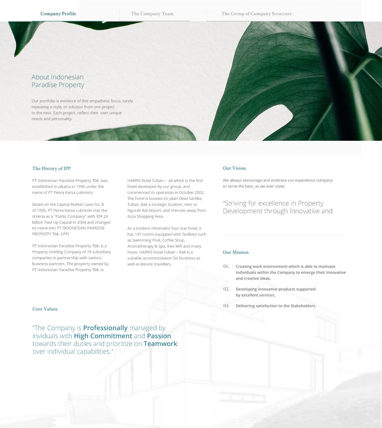Indonesia Paradise Property always strive to be different by developing and creating an iconic lifestyle destination in Indonesia's greatest cities. The design challenge is to keep the website look professional with heavily influence in tropical mood.