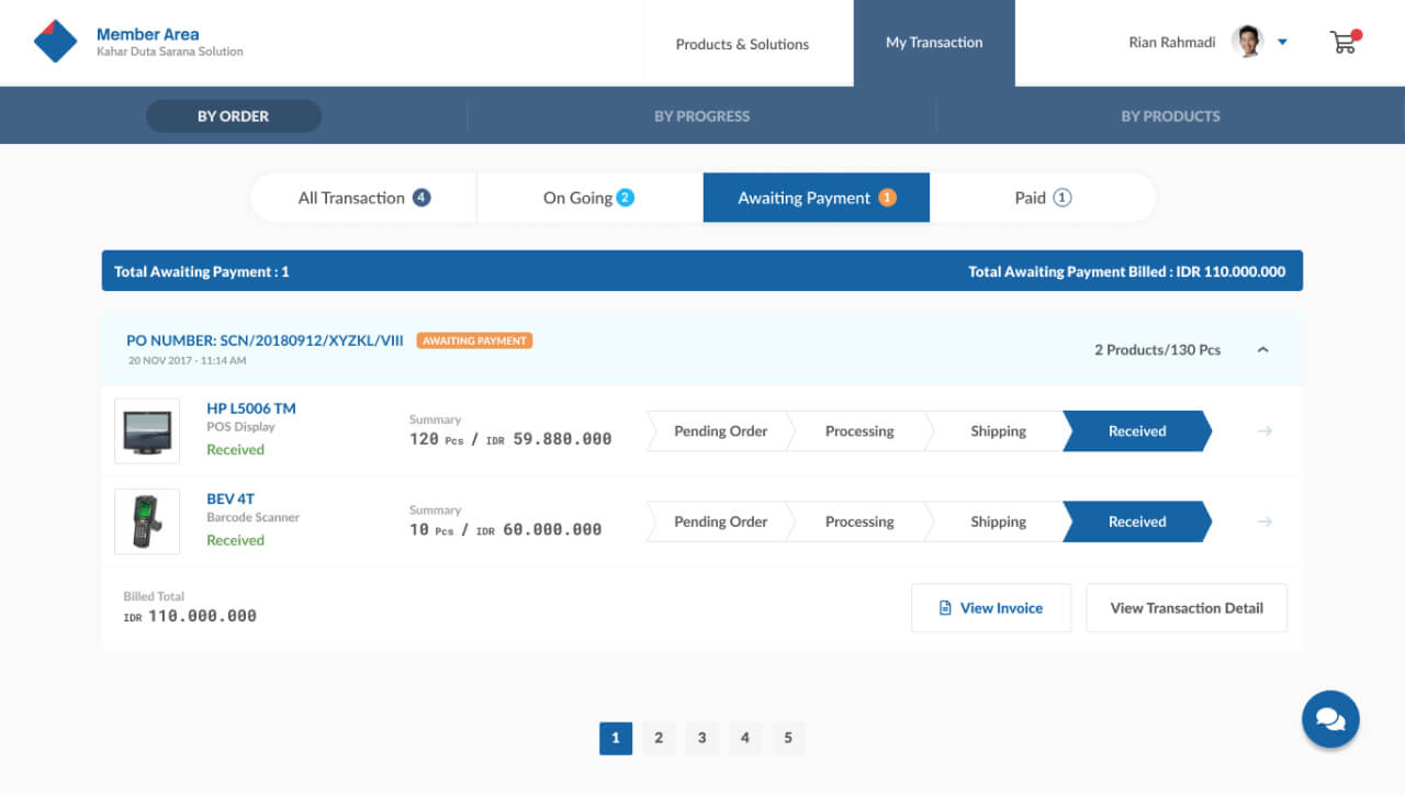 The problem is, not all products are always ready to be shipped. Many POS devices need further customization, so some of the orders need tracking tools for their customization development. That's why I also create the dashboard interface for users to view their order development progress. These feature help user to have a sense of guarantee and transparency for their order