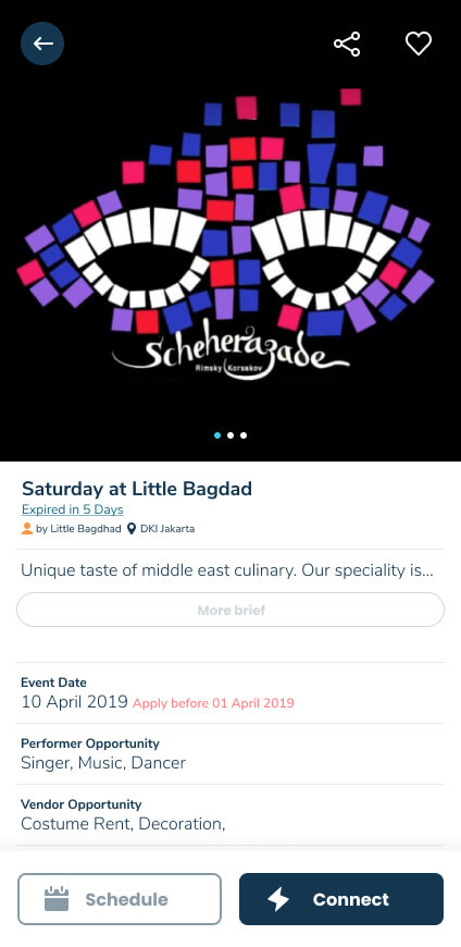 Simply said, this app aim to become a hub for a performer, talent seeker and event vendor on a single platform.